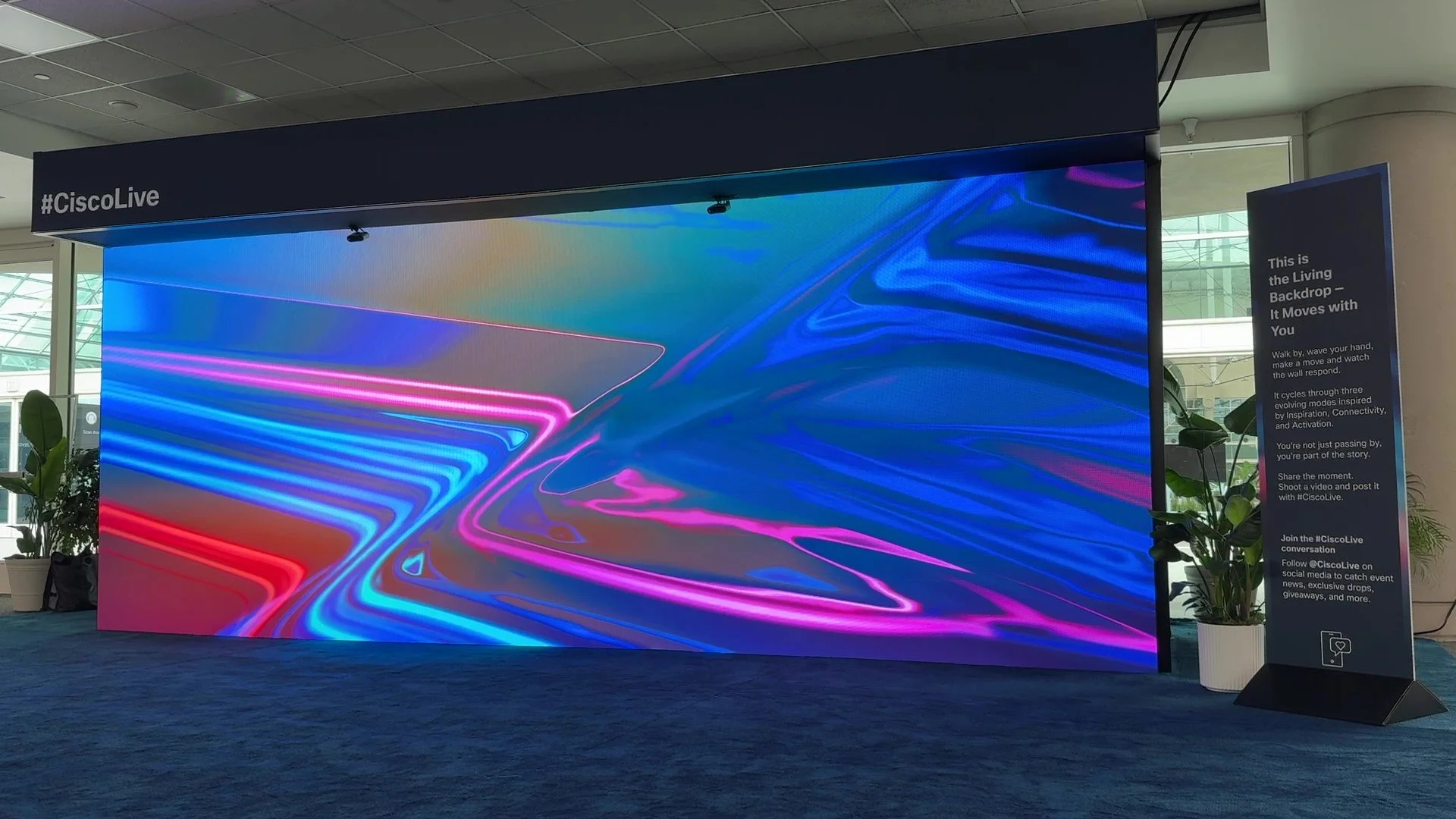 George P. Johnson Experience Marketing worked with Cisco to develop an installation called the “Living Wall” as part of the Social Lounge at Cisco Live 2025. This installation served as a unique and engaging photo opportunity for CL25 attendees, where attendees walked in front of an LED wall and watched their movements transform abstract visuals in real-time. This activation had four unique modes and served as both a beautiful ambient art piece and a unique interactive photo opportunity. The entire creative and technology development was completed in-house by GPJ.