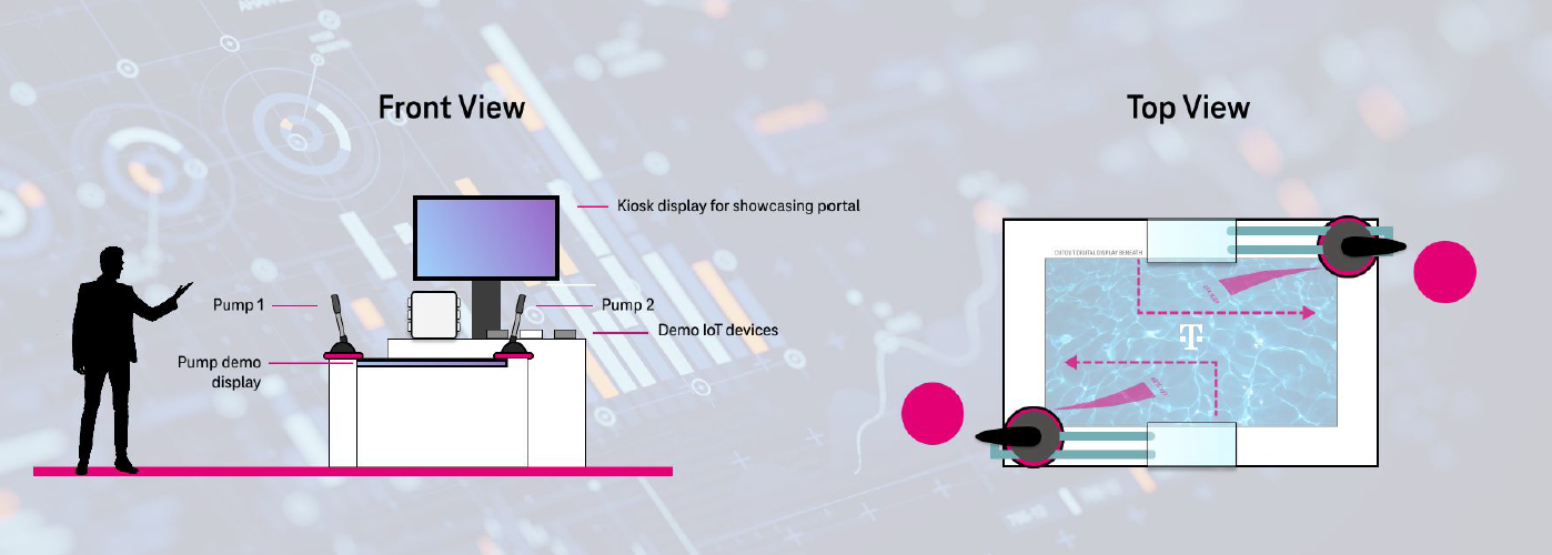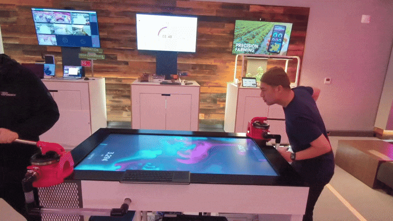 Envoy worked with T-Mobile to develop an application showcasing their IoT startup hub. Multiple integrated IoT devices leveraging the T-Mobile network were combined with a 2-player game play utilizing water pumps. In addition to the table top, there was a kiosk display for showcasing the web portal with IoT device data.